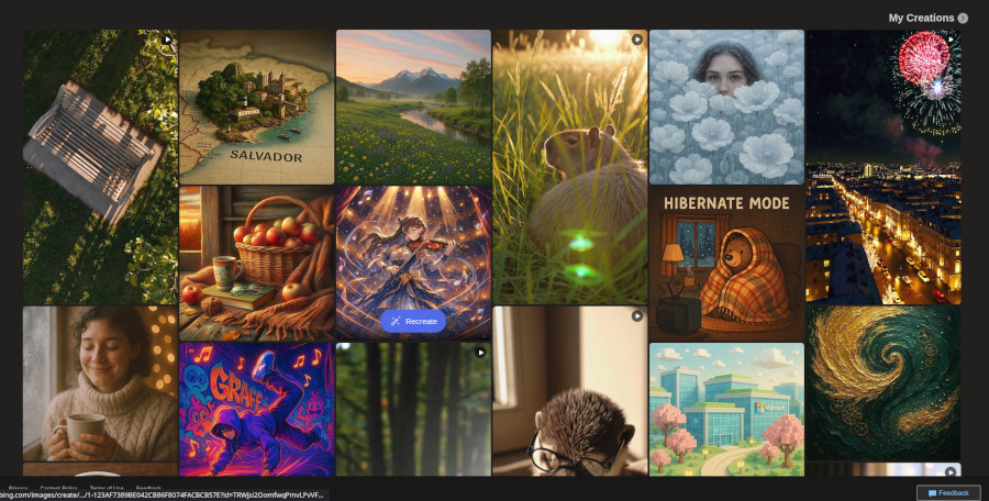 By scrolling down with the mouse, users can explore a series of images as a source of inspiration and view their own creations by clicking on ‘My Creations’.