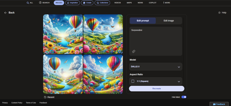 After entering the text prompt, the user can select, via the drop-down menus, the artificial intelligence model to use and the image aspect ratio. At this point, it is sufficient to click “Create” to start the generation process.