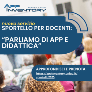 Nuovo servizio: sportello “Parliamo di app e didattica” rivolto a docenti che desiderano approfondire l’uso delle app di AppInventory4Edu o confrontarsi sul loro utilizzo didattico.